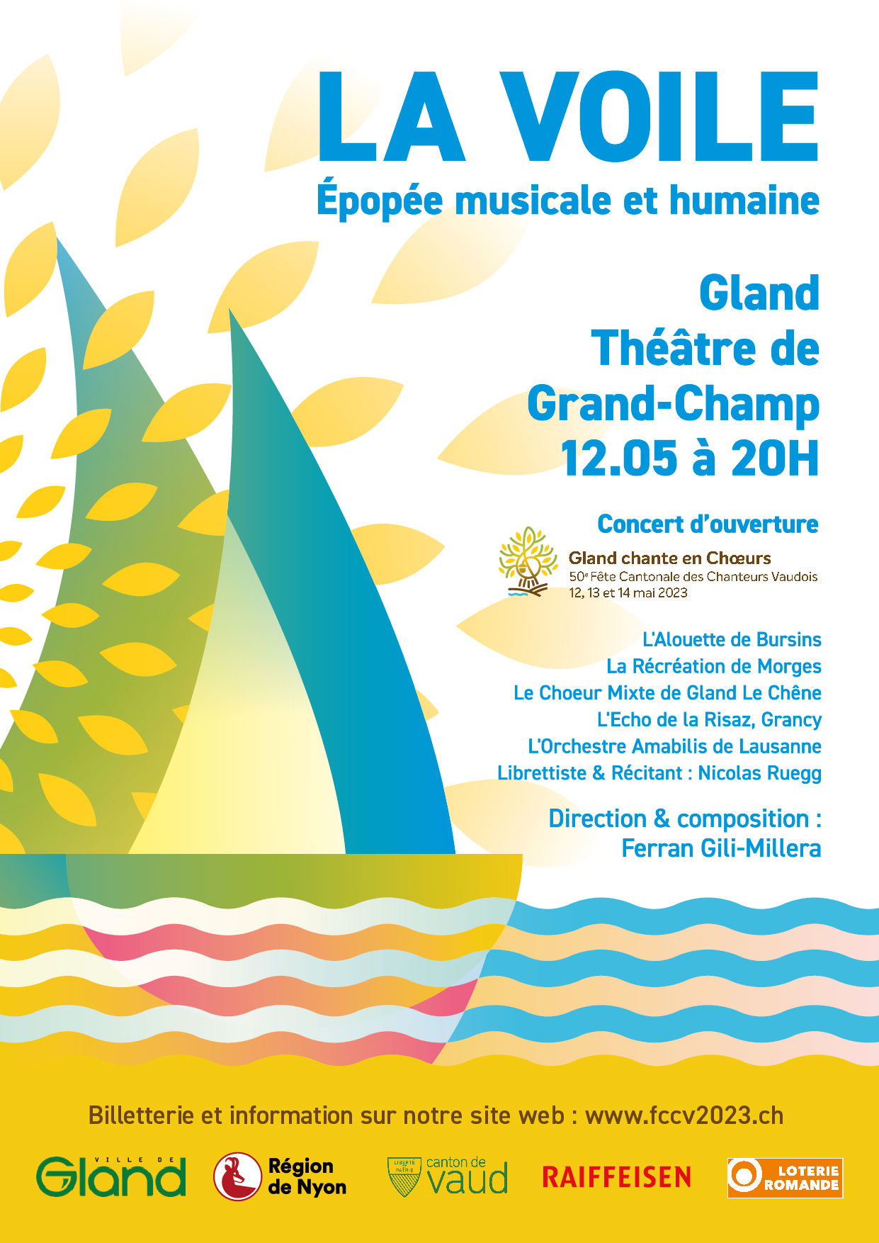 Mai 2023 : Concert d’ouverture de la FCCV 2023 Le vendredi 12 mai 2023 au Théâtre de Grand-Champ à Gland, une belle occasion pour la reprise de la création musicale La Voile