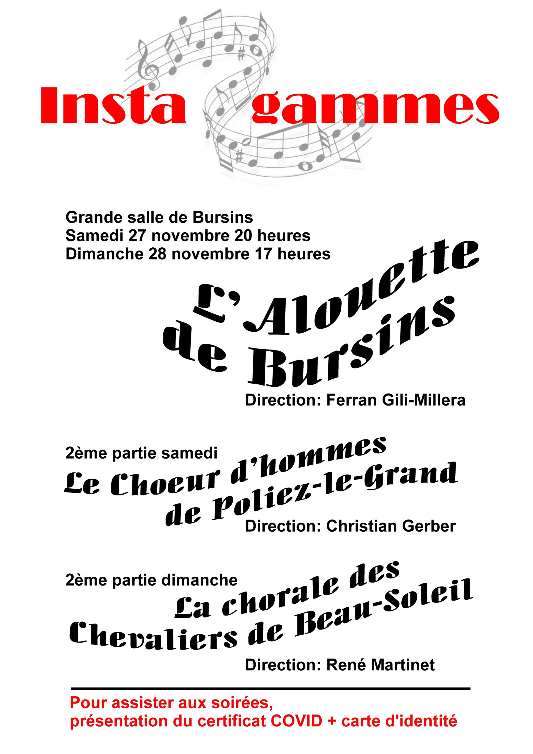 Novembre 2021 : nos soirées De chaleureuses retrouvailles avec notre cher public, avec le choeur d’hommes de Poliez-le-Grand le samedi et le choeur d’hommes « Compagnons de Beau Soleil » de Mont-sur-Rolle.
